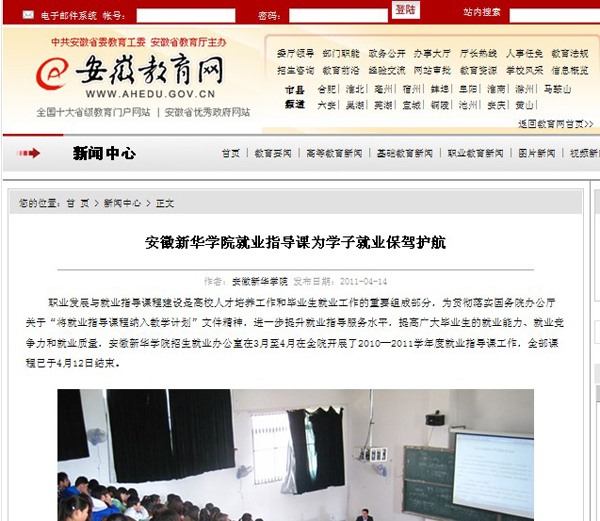 安徽教育网报道系列:安徽新华学院就业指导课为学子就业保驾护航