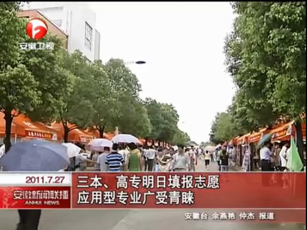 7月27日上午,在皖招生三本及京津沪皖高职(专科)专场招聘会在我校隆重举行。 安徽卫视新闻联播、安徽电视台经济生活频道《第一时间》栏目组、安徽电视台公共频道、安徽省广播电台、合肥日报、安徽教育网、新安晚报、安徽商报、江淮晨报、安徽市场报、合肥电视台教育法制频道、合肥晚报、合肥广播电台、万家热线等媒体来到我校进行现场采访。