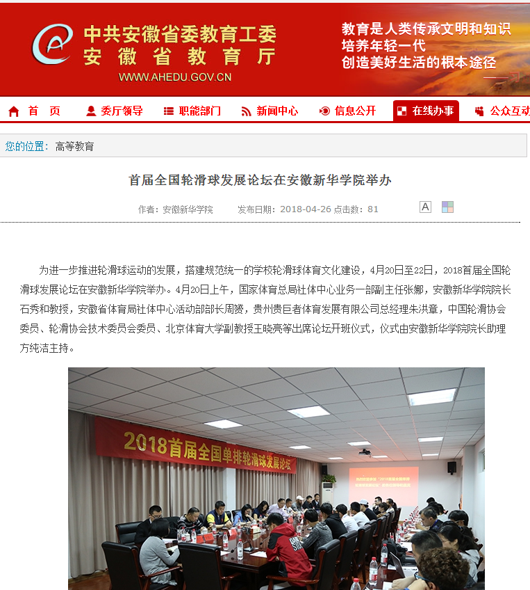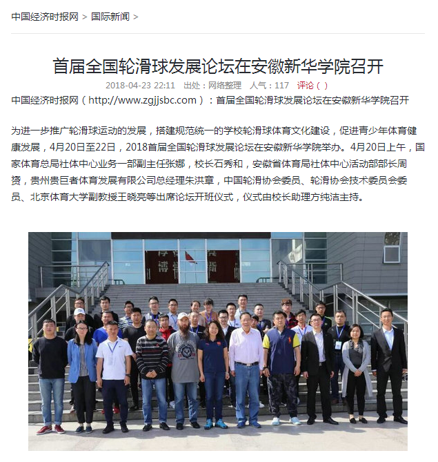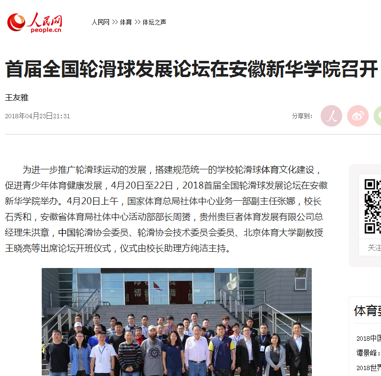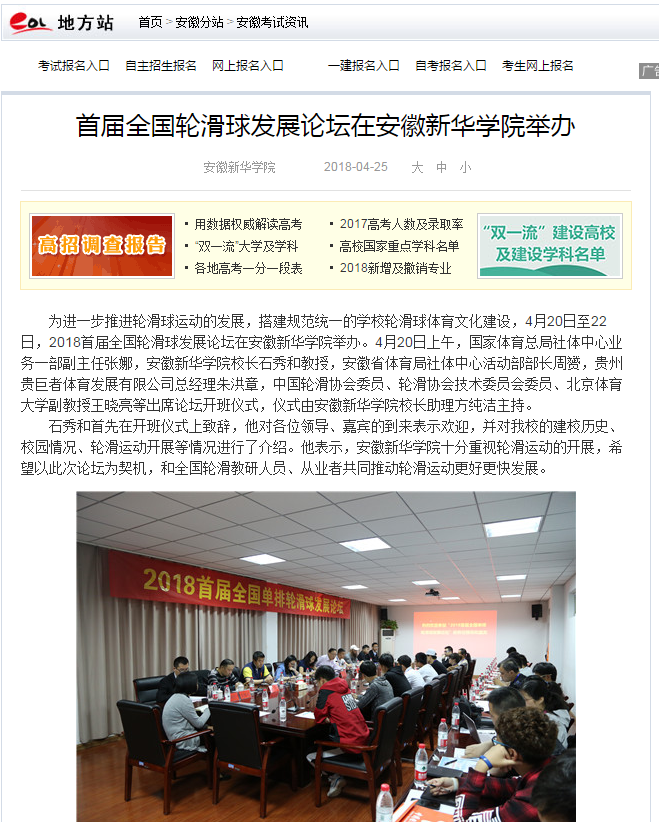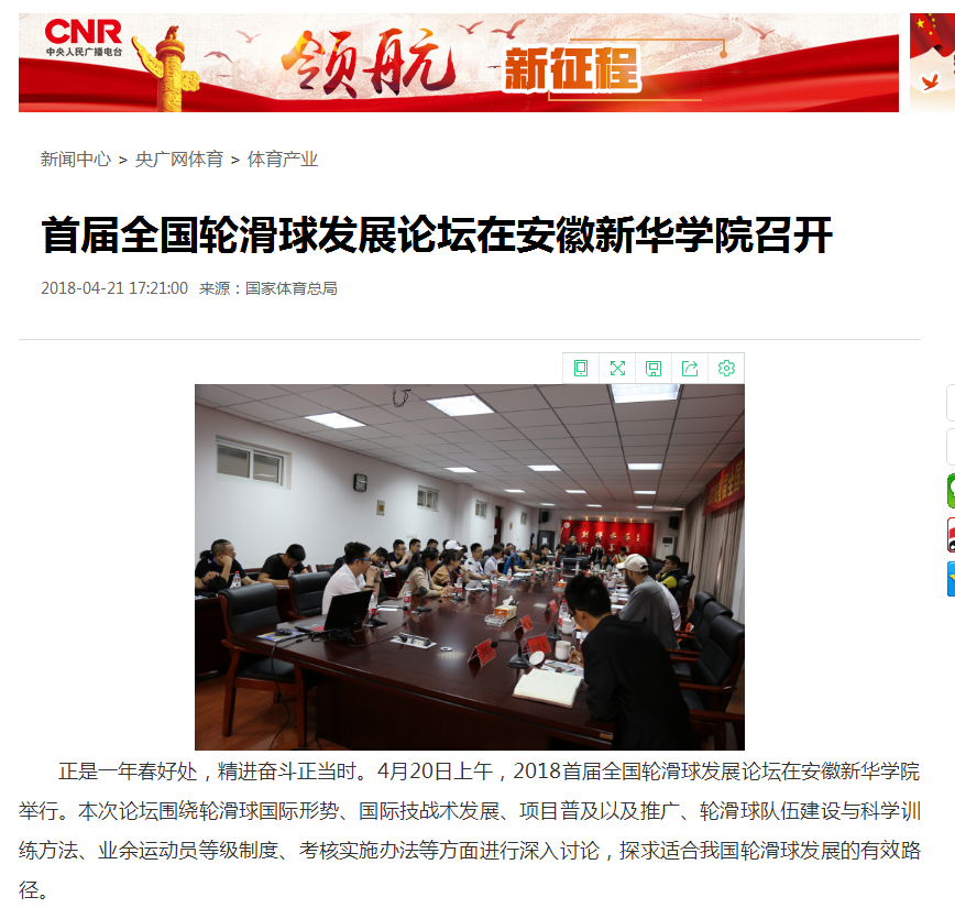 人民网、央广网、中国教育在线、国家体育总局、安徽教育网、中国经济时报网、体坛网、网易、搜狐网:首届全国轮滑球发展论坛在安徽新华学院召开